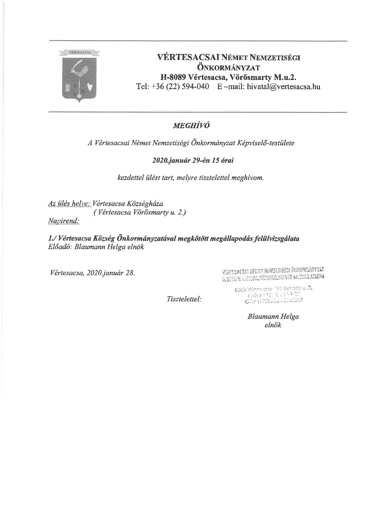 Meghívó – Vértesacsai Német Nemzetiségi Önkormányzat Képviselő- testületi ülésére joci Egyéb kategória 2020.01.28.2021.07.16.